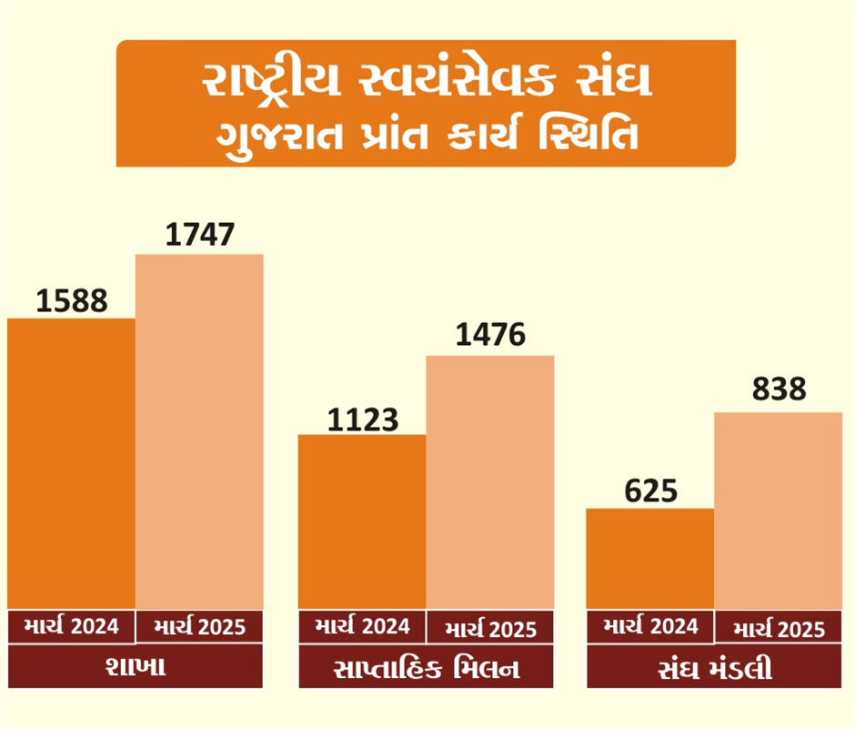 - RSSના કાર્યમાં ગુજરાતમાં અને અખિલ ભારતીય સ્તરે વૃદ્ધિ