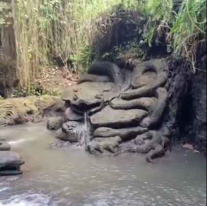 આ ધોધની સૌથી ખાસ વાત એ છે કે તેની આસપાસ સાપના આકારમાં શેવાળથી ઢંકાયેલા શિલ્પો બનાવવામાં આવ્યા છે, જે પાણીની વચ્ચે પ્રાચીન ખંડેરનો દેખાવ આપે છે. આ મૂર્તિઓને જોઈને એવું લાગે છે કે જાણે કોઈ વિશાળ સાપ પથ્થરમાં ફેરવાઈ ગયો હોય, જેના કારણે તેને સોશિયલ મીડિયા પર “સ્નેક વોટરફોલ (Snake Waterfall)” કહેવામાં આવવા લાગ્યો.